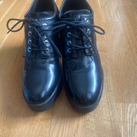 Kjempestillige flate sko i imitert skinn selges. Kjøpt fra LC Waikiki. Nesten ubrukt, så ingen bruksmerker. Kan hentes på Tøyen eller sendes.
