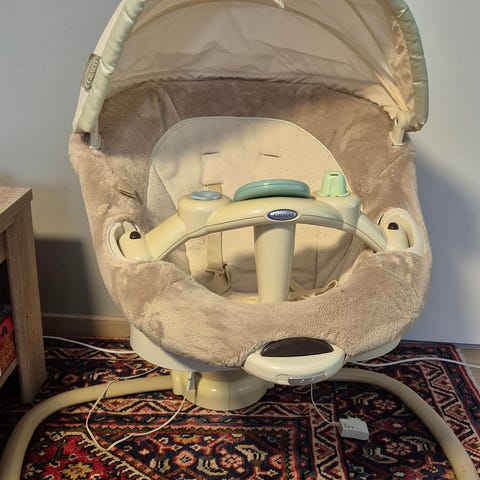 Graco Elektrisk barnestol selges for 1770kr. Ble kjøpt for 4000. Stolen er brukt kun ett par ganger, og funger som den skal. Det er 6 hastigheter på stolen og den spiller musikk.