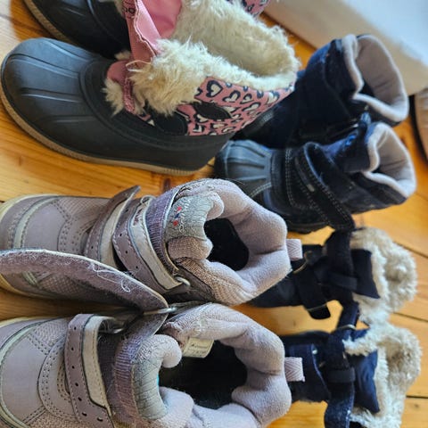1. **Lys rosa støvler** - størrelse 24, brukt kun én gang. Veldig varme og pene. ——Pris: 200 kr.