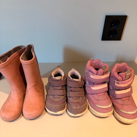 3. **Rosa Viking-støvler** - veldig varme og komfortable, størrelse 25. ——Pris: 100 kr.
