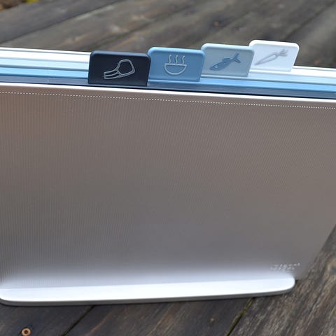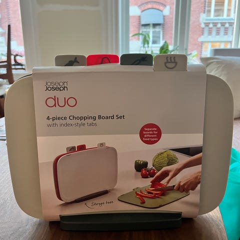 Pent brukt skjærebrett sett fra Joseph Joseph med oppbevaringsboks