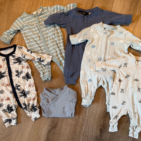 Fineste pysjen fra Petit Bateau i str 74 (litt liten på størrelsen) og søte pysjer fra Lindex.