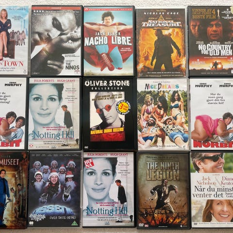 DVDer og gamle VHS-kassetter, nye og brukte, men som nye, spør om pris.