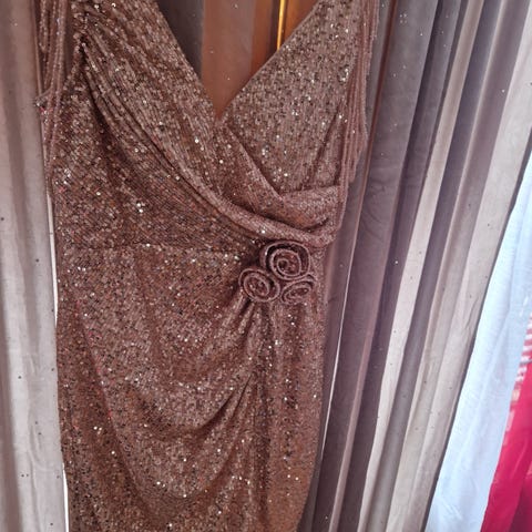 "Scarlett" selskap kjole , glitrende sølv farge.