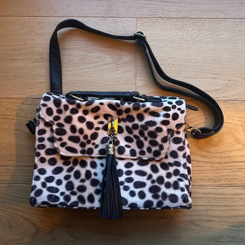 Knallkul skinnveske med Leopard pels foran.