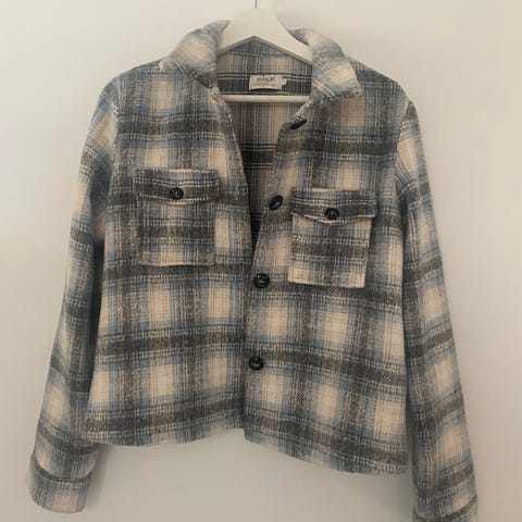 Meget pent og lite brukt jakke fra Only i str. S. Litt kort modell. Sendes med fiks ferdig eller hentes Helsfyr på dagtid enkelte hverdager etter avtale.