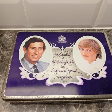 Flott teboks laget i anledning av bryttluopet til William og Kate av England (2011.) Den måler ca 11x6,5x11cm. ingen skader.