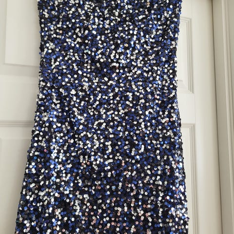 Paljetter foran. Kjolen er brukt én gang.