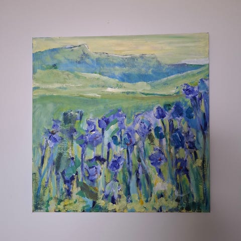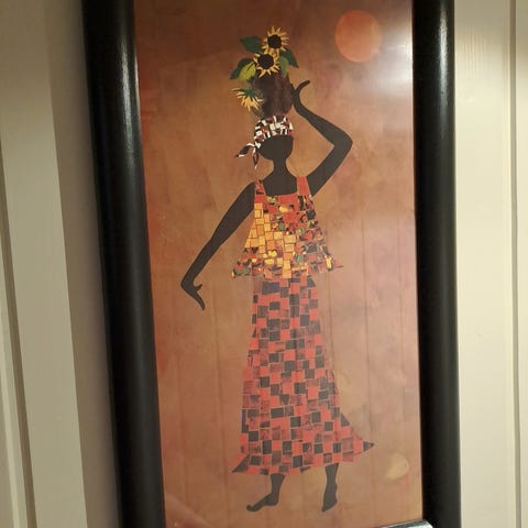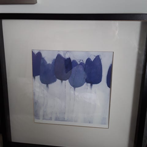 Bilde i blå ramme ca 21,5 x 16,5 cm
