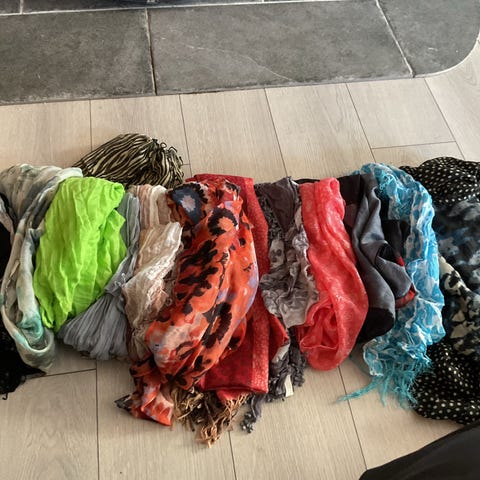 Pent brukte skjerf.