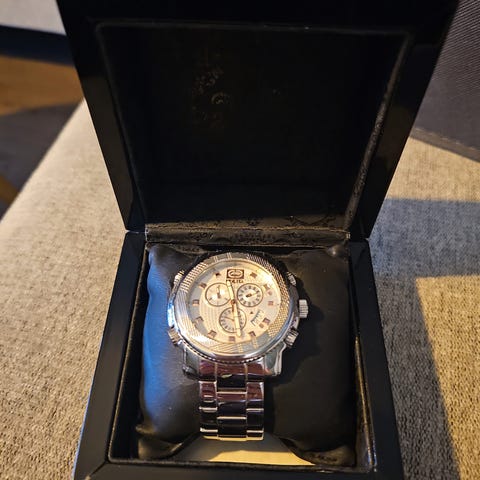 Lite brukt Marc Ecko chronograf klokke med krystaller.. Unisex. Solid klokke med tyngde i stål.