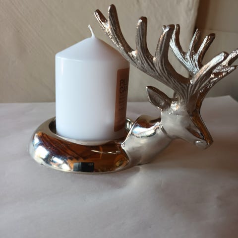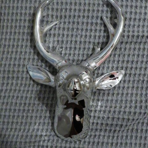 Hjortehode i metall(?) fra IKEA. Ca 45 cm høy med hornene.