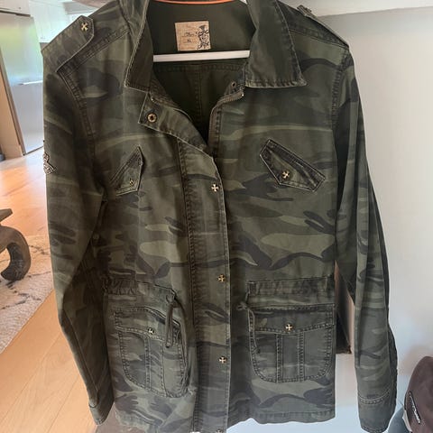 Brukt et par ganger. Superkul militær jakke. Stor i størrelsen. Jakken er foret. Avtagbar krage. Jakken er kjøpt fra Sverige. Førpris kr 2999. Selges mot at kjøper betaler porto.