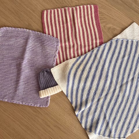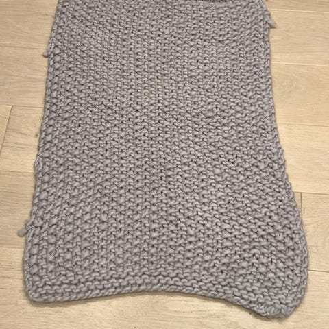 Mykt babypledd, strikket i teddygarn. Måler 60x90cm.