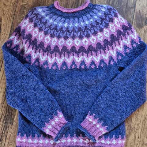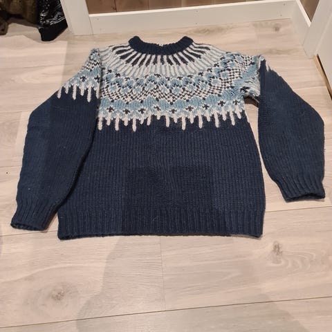 Føyka strikket i alafosslop str M/S. Nydelig håndstrikket genser