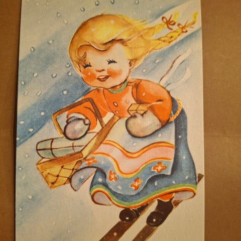 Nan Pollard var en illustratør kjent for å lage papirdukker, spesielt fra midten av 1900-tallet. Papirdukkene hennes ble populære blant barn og samlere, og hun illustrerte en rekke figurer som kunne kle seg ut i forskjellige antrekk. Mange av disse dukkene ble utgitt i bøker og blader, hvor barn kunne klippe dem ut og leke med dem. Dukken er i litt «rusten» stand. Der er bretter, noe revner og tapebiter. Men den er utrolig sjarmerende og kjolene er i veldig bra stand. Se bilder for alt som følger med og mål av papirdukken.