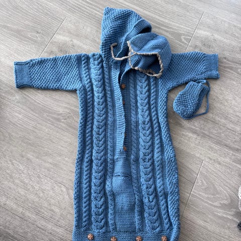 Veldig pent brukt bilstol pose i nydelig blå farge. I ull, så denne er god å varm.