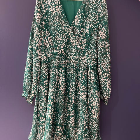 Brukt 2 ganger. Vasket en gang. Oversized - passer godt til en M også. Fin med belte og tøff med cowboyboots til. Mykt materiale og fin farge. Kjolen har lommer.