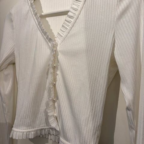 Naturhvit langermet genser med snøring på framsiden fra Gina Tricot.