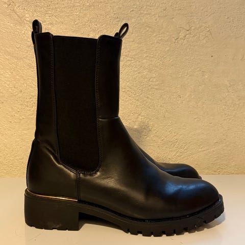Selger stilige gullfargede ankelstøvletter – kun brukt én gang! Perfekt til å gi antrekket litt ekstra glans, ideelle til festlige anledninger. Størrelse 40.