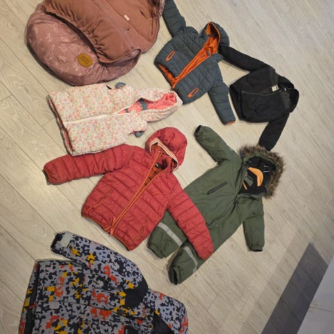 Er på jakt etter mørkeblå dress i størrelse 110 og 134.