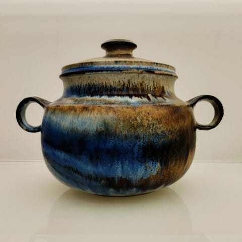 kunstglassvase, norsk glass, Hanna Hellum, Randsfjord Glassverk, 1970-talls glass, vintage glass, retro glass, studioglass, håndlaget glass, kunstglass, koboltblå vase, blå kunstglass, farget glass, art glass, skandinavisk design, norsk design, samlerobjekt, samlerglass, dekorvase, unik vase, designvase, signert glass, kunstnerglass, studio glasskunst, skulpturelt glass, fargespill, marmorert glass, organisk design, interiørvase, statement-vase