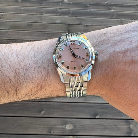 Klokken er pent brukt. Den er kjøpt i 2012, har ligget ubrukt i esken sin de siste 8 årene. Modell selges ikke lenger, ny pris i 2023 var kr. 17 100,-.