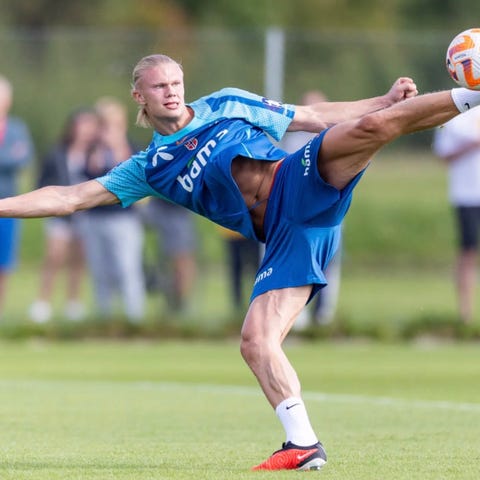 Metallskilt Erling Braut Haaland. Pent og lite brukt. Skillet er 20×30 cm. Enkelt å henge opp på vegg. Se bilder. Haaland, Manchester City. Fotball. Engleks fotball. Norge.