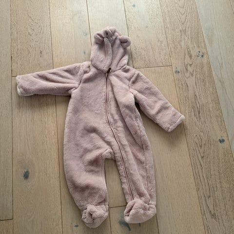 Rosa kosedress til vogn/bil , ut døra. Hetta har «ører». Str 6 mnd. Pent brukt. Kan sendes.