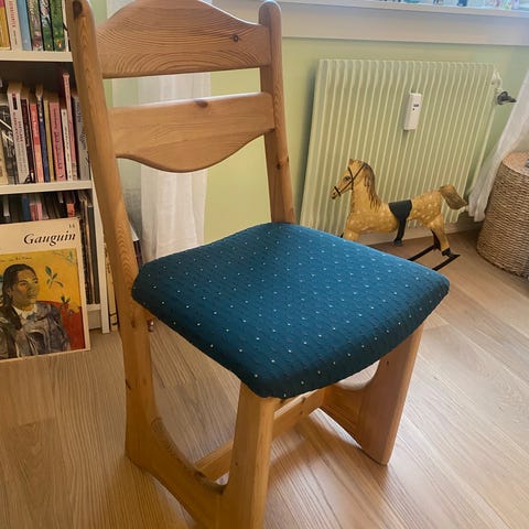 Kjempe morsom og meget god stol å sitte i. Laget av stor furukåte. Spesiel ingen har lik.
