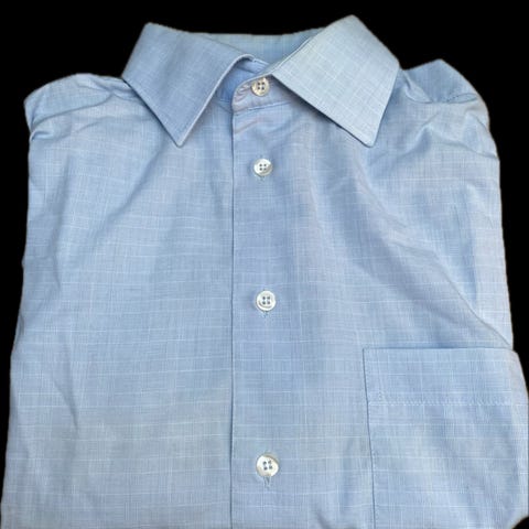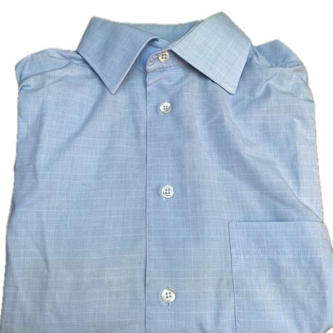Vintage blå/hvit rutete skjorte med albue-lapper. LARGE. Pent brukt
