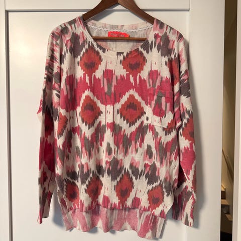 Rosa kortermet genser, aldri brukt. Vårens farge. 75%ull,25%polyamide.