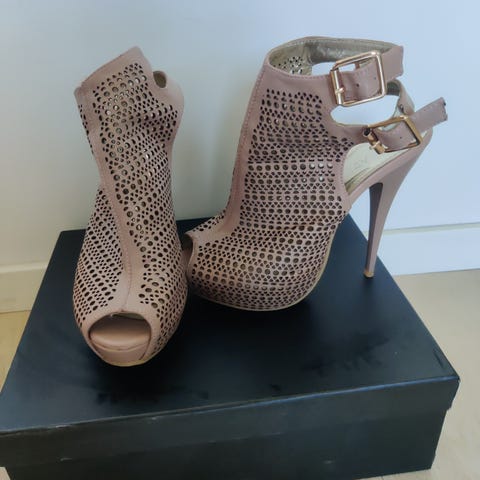 Classy stilettsko.. tøff detalj m lenke mellom remmene i front.