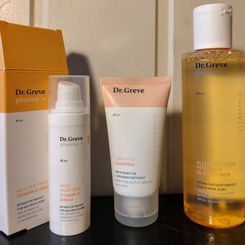Ny, uåpnet. Fra Dr Greve Pharma. Protecting day cream vitamin C. Begge selges for 250 kr.