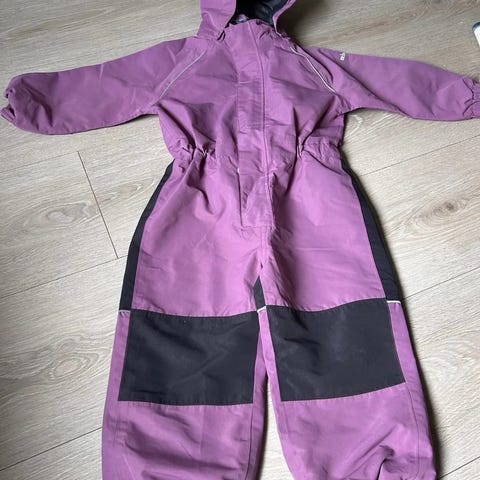 Parkdress str. 120 med utvidbar bein og armer. Røde svømmene har kuttet(passer på 120-128), men har noe bruksmerker på rumpe og knær, påvirker ikke bruken av det. Veldig god å bruke i vår/høst.