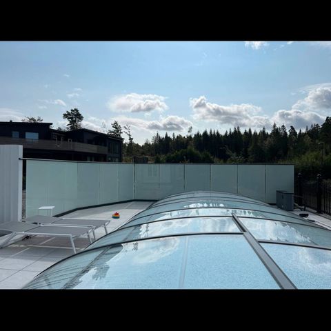 4 stk. hvite glassvegger . Passer til hagestue. Det er aluminiums rammer og 6 mm herdet glass.