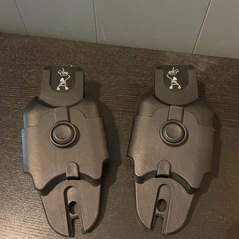 Adapter mellom Maxi Cosi bilsete og Brio barnevogn. Kjekt å ha i starten ved hyppige turer inn og ut av bil.