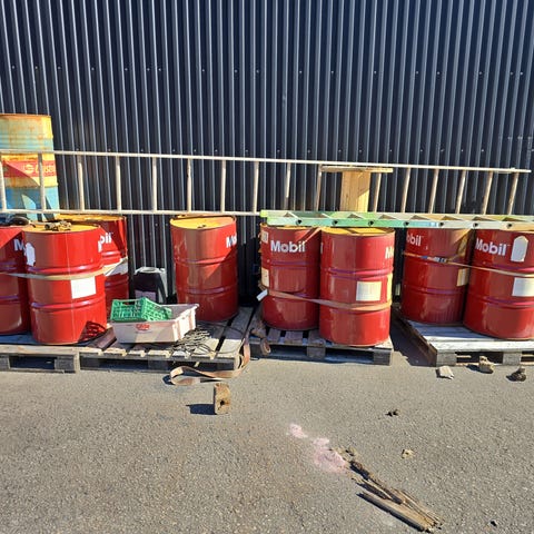 Selger flere oljefat som tidligere har vært brukt til oppbevaring av matolje og glyserin. Fatene er ikke rengjort på innsiden.