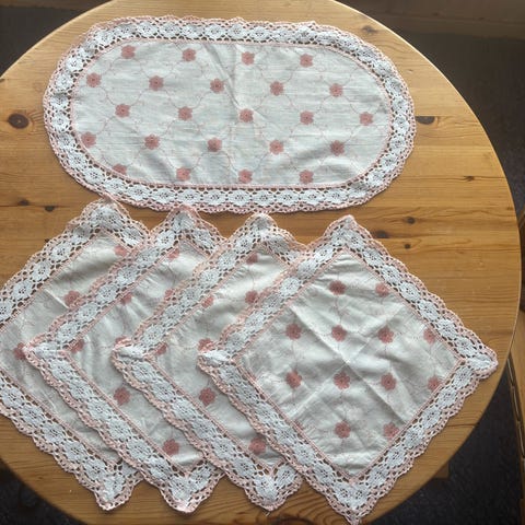 Duken kan feks brukes i brødkurv og brikken under en kopp, karaffel eller vinflaske