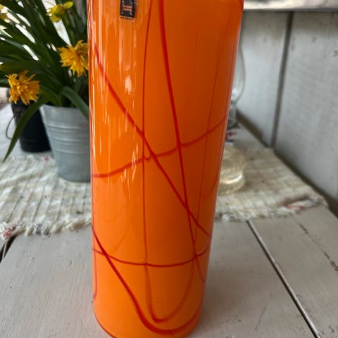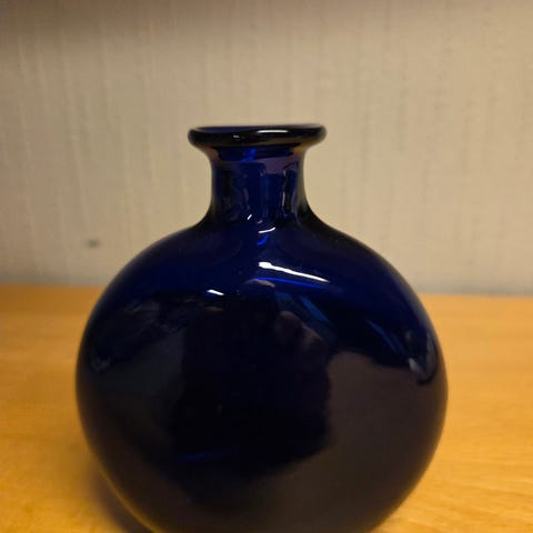 Gammelt massiv, tung vase med sommerfugl motiv, Hadeland Glassverk, selges.