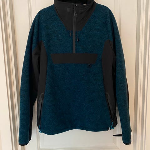 Bergans lang og god ulljakke med hette. 59 % ull. 💙deilig høstjakke som varmer🍂🍁str s