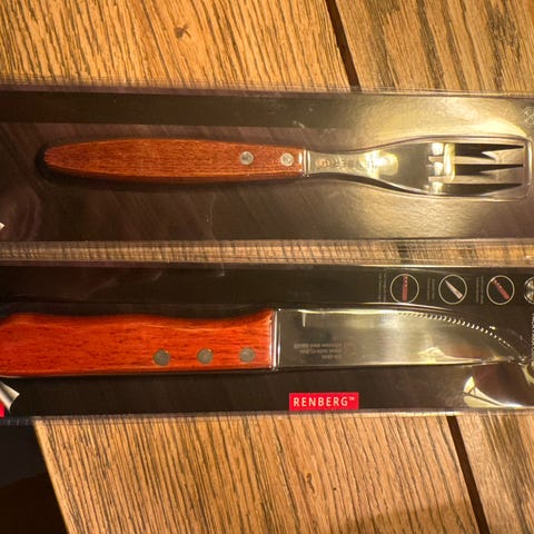 Nytt bestikk i beige 26 deler. Til seks personer + salatbestikk. Farge beige og sort