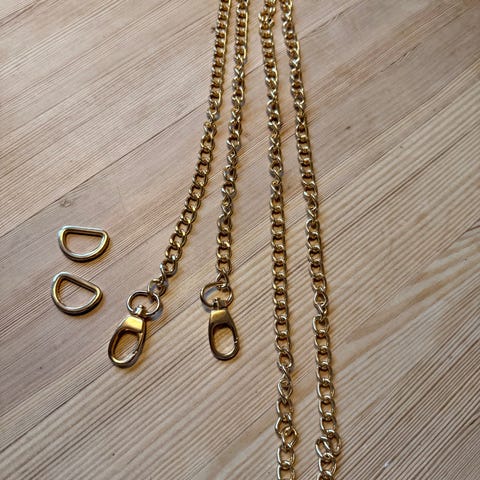 Helt ny og ubrukt bagchain/veskelenke i gull, (100cm) selges for 350kr.
