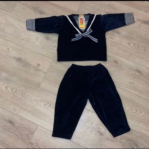 Ny matroskjole i mørke blå fløyel str 12 mnd og 18 mnd selges kr 95. har matros dress til gutt også.