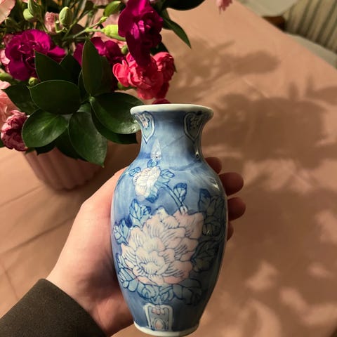 Høyde drøye 25,5 cm, vekt 2094 gram. Pent brukt.
