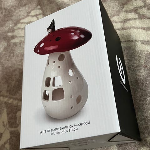 Ubrukte i eskene: Dekorsopp med nisse i glasert keramikk, 9,5 x 9 x H11 cm. Utstyrt med LED-lys og bruker 2 x LR44, som er inkludert. Leveres i gaveesker.