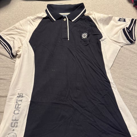 Hvit med svart mønster, brukt to ganger.