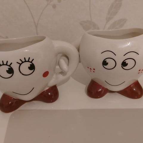 Et søt par mocca kaffekopper fra 1970-tallet vil gjerne glede et kjærestepar ! De ble aldri brukt, men stod til pynt i en kort periode.