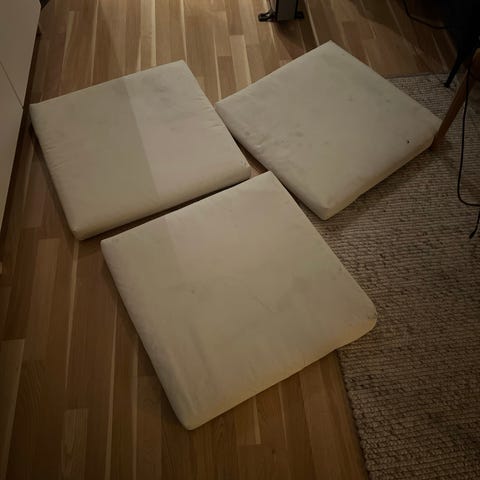2 deilige puter i ull med en del nupper på. Er sikkert mulig å fjerne. Trekket kan ikke taes av.