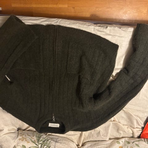 Strikket jakke med knapp som feste mørk grønn - litt nupper men fortsatt fin str M/L